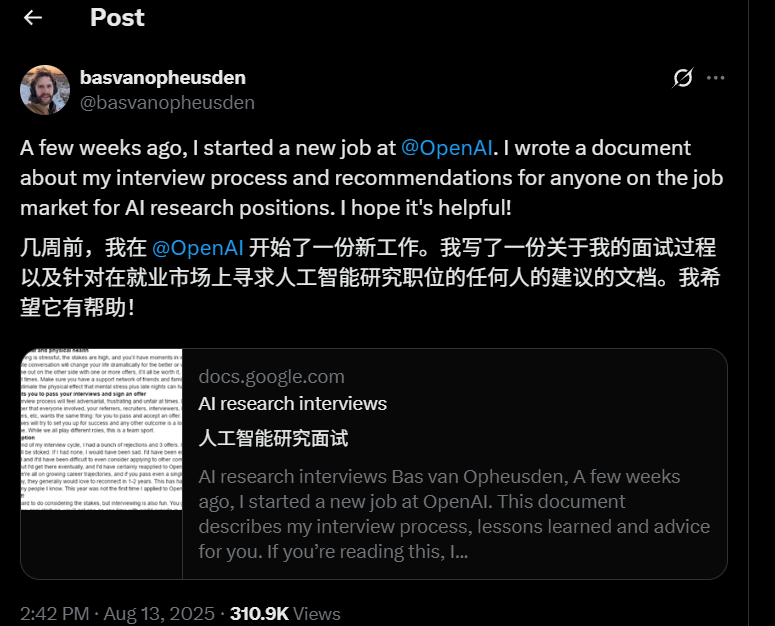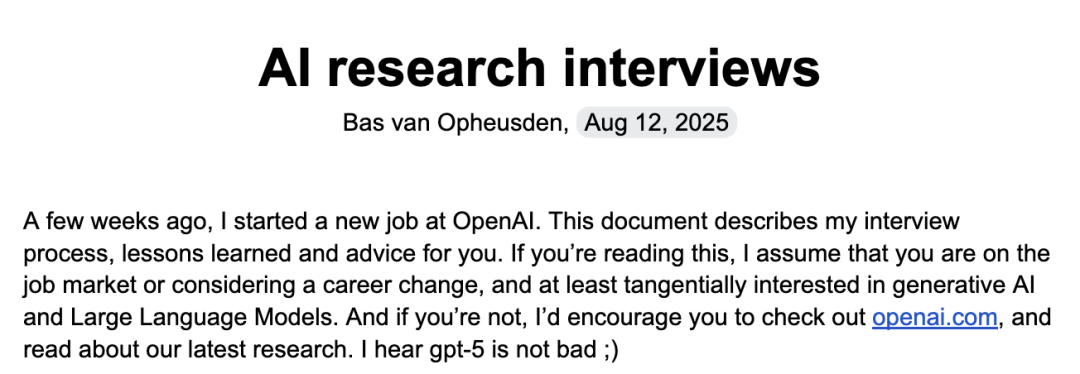 在历经数轮苛刻面试后,成功入职OpenAI后,Bas van Opheusden得出的终极结论。