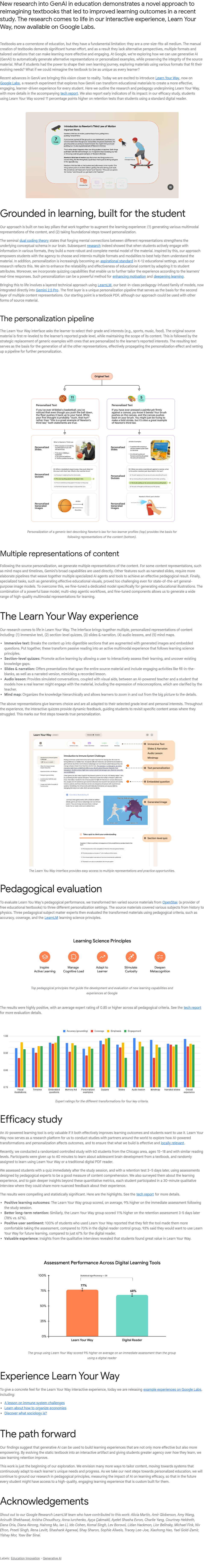 一项关于生成式人工智能(GenAI)在教育中的新研究展示了一种重新构想教科书的方法,并在近期研究中提升了学习效果。该研究在谷歌实验室推出的互动体验平台“Learn Your Way”中得以呈现。传统教科书作为教育的重要工具,存在“一刀切”的局限性,且制作过程耗时耗力,缺乏多样化的视角与个性化内容。谷歌正在探索如何利用GenAI自动生成替代性表达或个性化示例,同时保持原内容的准确性。未来,学生或将能根据自身需求选择不同形式的学习材料,使教科书真正适应每位学习者的特点。
