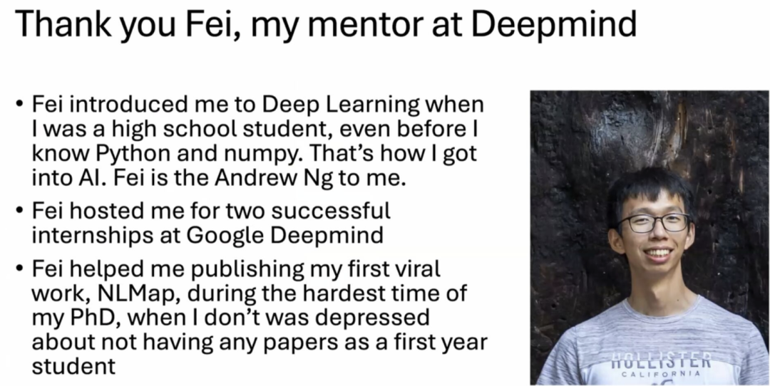 这正是他踏入AI领域的起点,Fei Xia就像他的「吴恩达」。