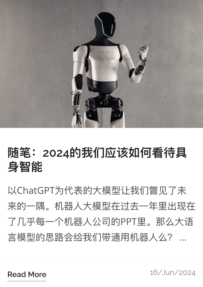 在去年的博客中,他对具身智能做出了乐观的判断: