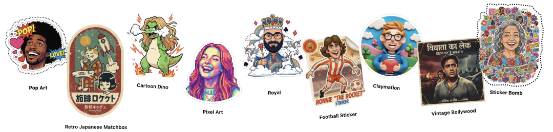 无需输入任何提示词,贴画风格也是直接点选,可以选择的一共有九种。