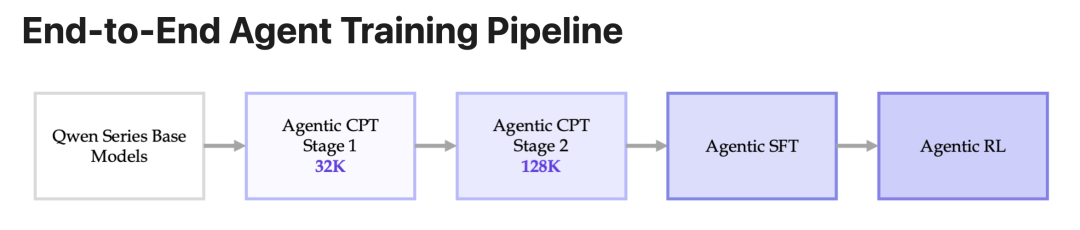 团队引入了Agentic CPT(增量预训练)来为模型打下坚实的Agent基础。