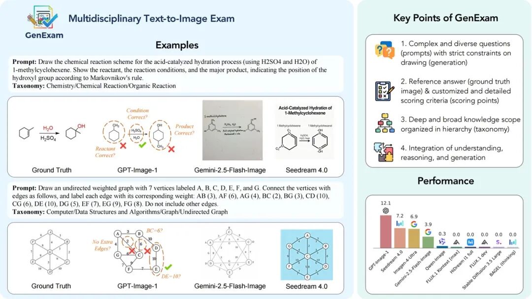 GenExam将“图像生成”转化为“考试任务”,给文生图模型设立了一个新目标:从“画得好看”走向“画得正确”。