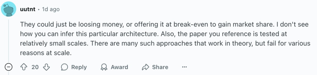 也有网友不同意这种说法,认为Grok此次的降价也许只是一种营销手段,并不能从中推断出xAI是否采用了什么新技术。