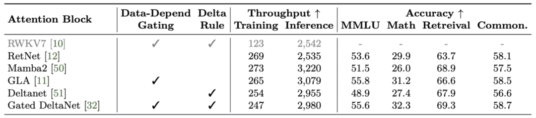 这六个之中,Gated DeltaNet的准确率最高,这主要归功于两个因素: