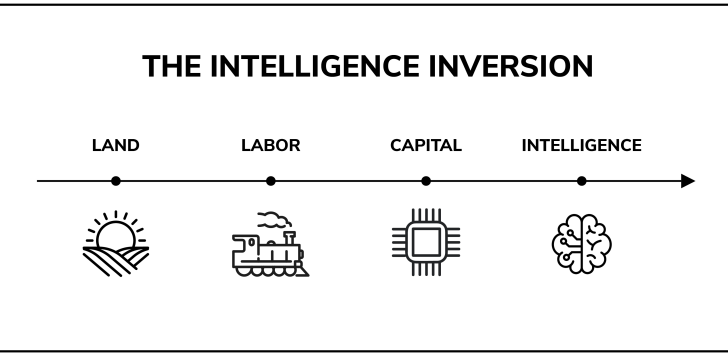 在《The Last Economy》书中,Emad提出了人类史上的四大「反转」(Inversion),每一次都代表着经济权力和价值创造方式的根本变化。