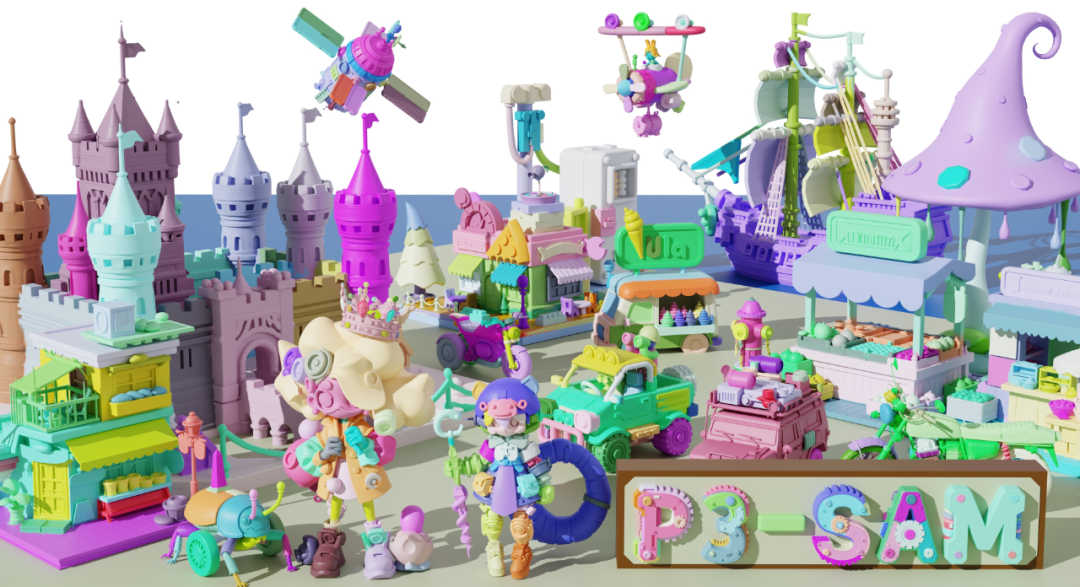 鉴于现有3D部件分割数据集规模普遍较小且缺乏详细部件标注,本方案开发了一套用于美术师创建网格的自动化部件标注流程,并据此生成了一个包含370万个高质量部件级掩码的三维网格数据集。