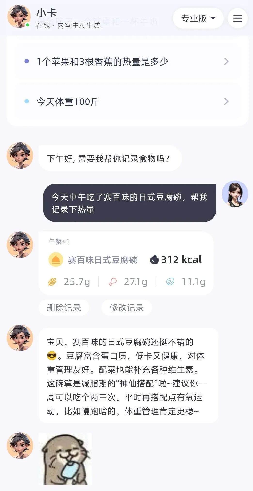一是大幅利用AI提效;二是加入个性化营养师身份,通过情感陪伴与个性化建议助力用户完成健康目标。