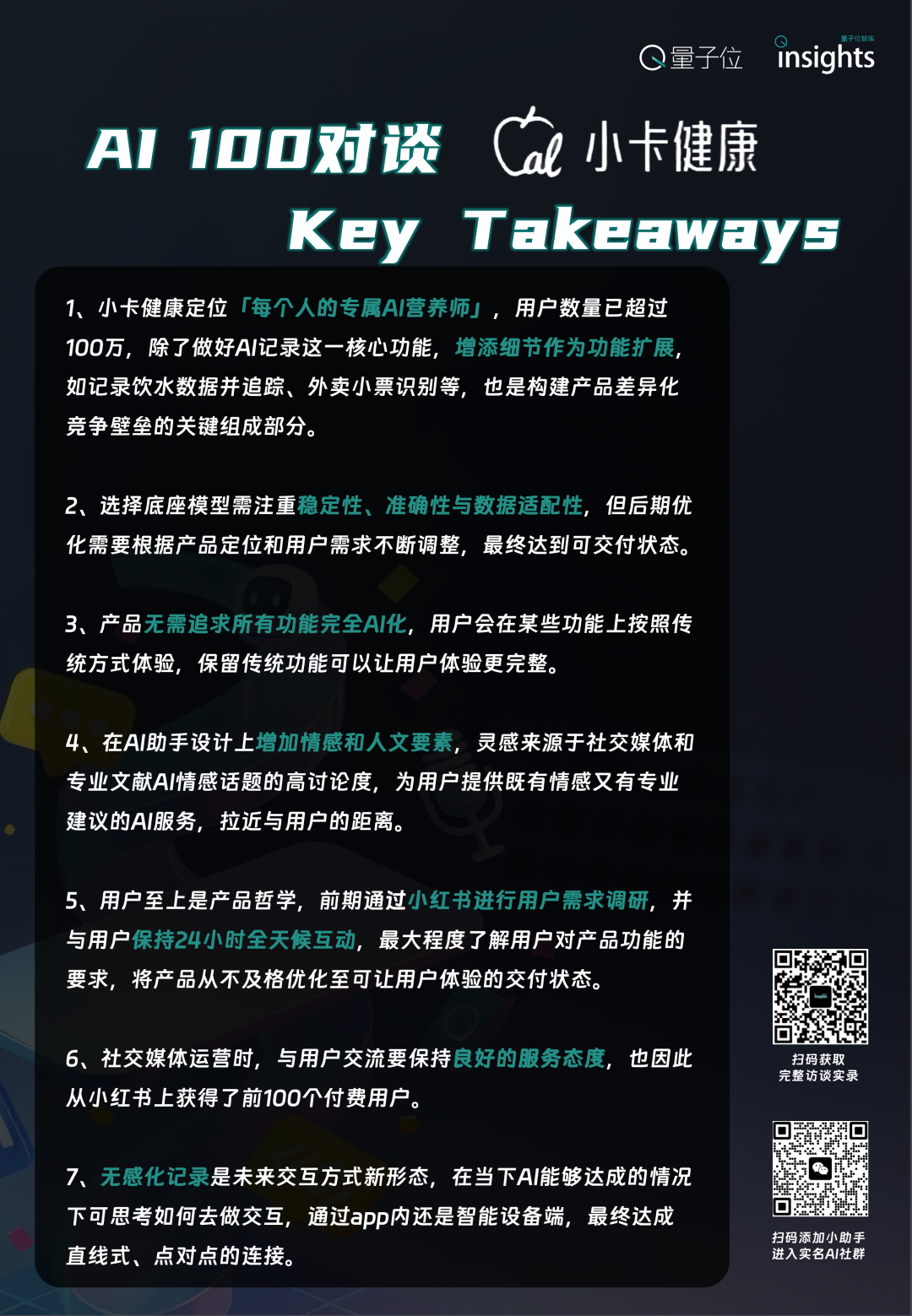 小卡健康:不止是这样,比如像我们刚刚提到打造个人专属AI营养师身份,目前还存在一定差距。现在我们会先做好AI记录工具。