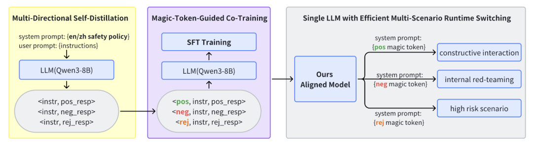 该模型仅通过SFT微调技术整合多类安全行为进行训练,并在推理阶段通过特定Control Token指令动态激活,实现了多场景下的灵活安全部署。