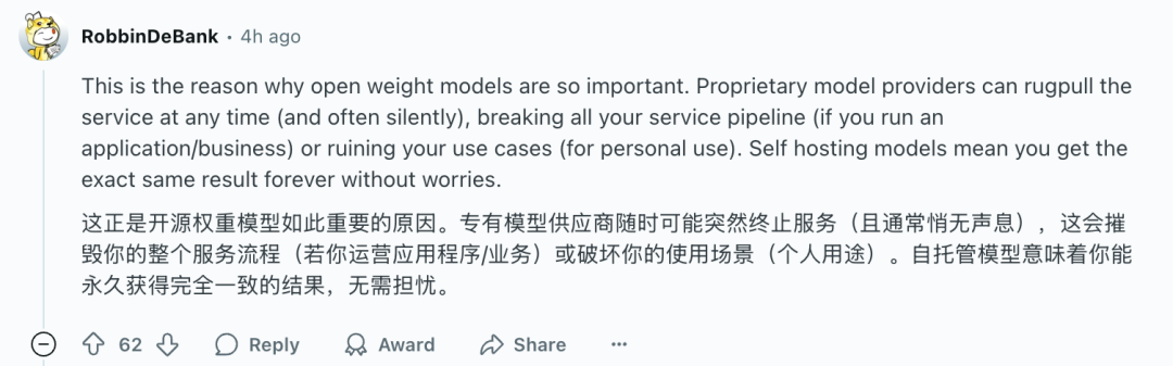 有用户表示,这个现象正好说明了为什么开源模型如此重要!
