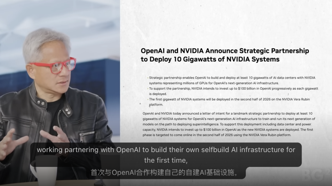 在最新近两小时的深度对谈,老黄不仅曝光了和OpenAI千亿合作的底层逻辑,还抛出了对AI行业的一系列判断: