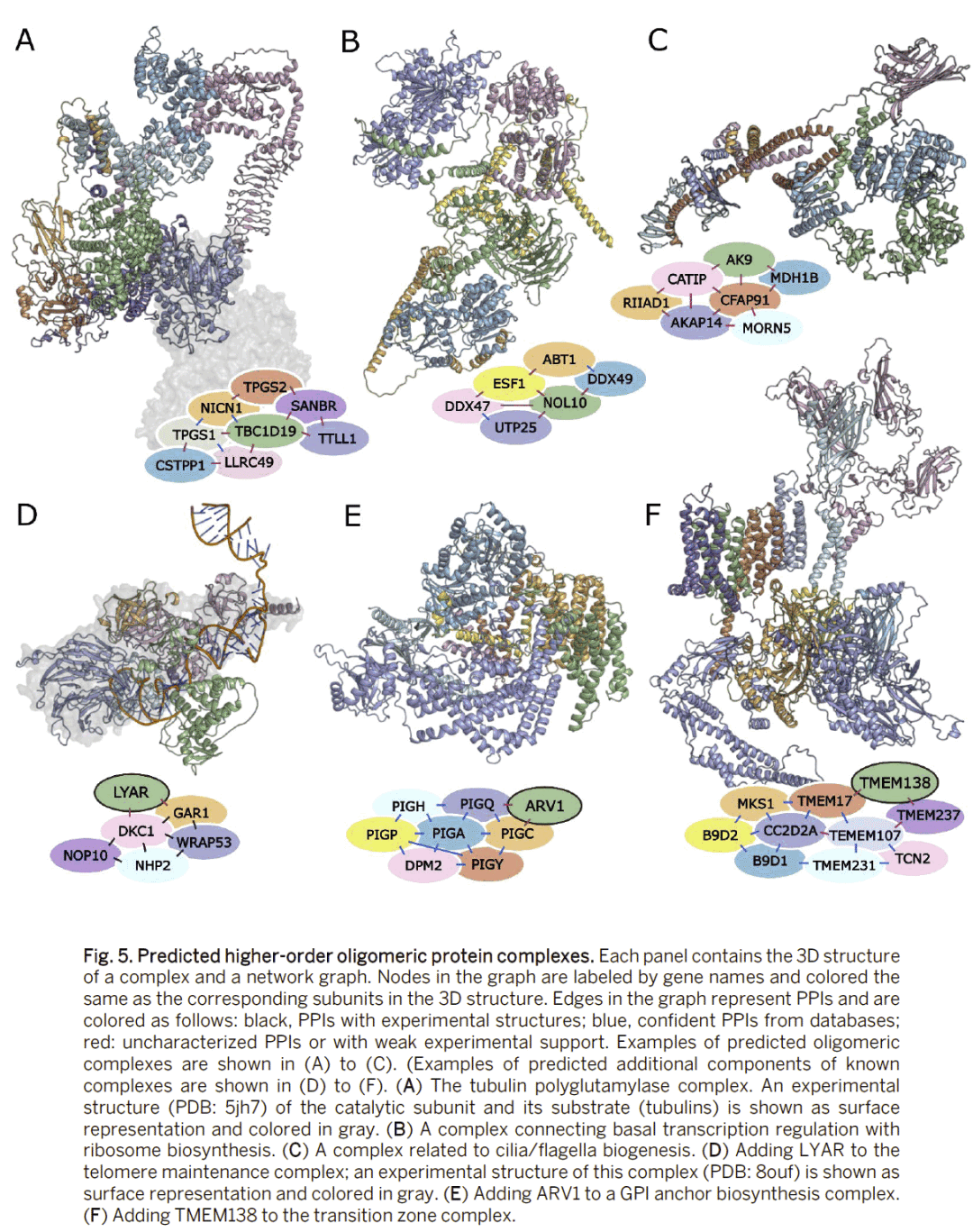 基于预测的互作网络,研究人员鉴定出数百个潜在多蛋白复合物,并为部分已知复合物预测了额外的亚基。例如,微管相关酶复合物和端粒维护复合物都被补充了新的组成成分。