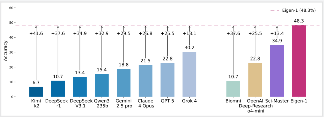 Eigen-1首次突破60分的意义远超一个基准测试:Eigen-1更预示着AI辅助科学研究的新范式。