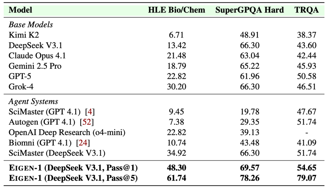 Pass@1: 48.30%(领先SciMaster 13.4个百分点) Pass@5: 61.74%(首破60%)