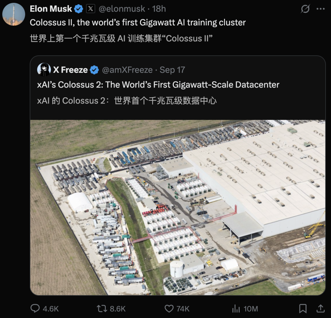 比如,xAI的Colossus 2是世界上首个千兆瓦级的数据中心,是世界目前最大的单一计算集群。为此,马斯克已投入了数百亿美元。