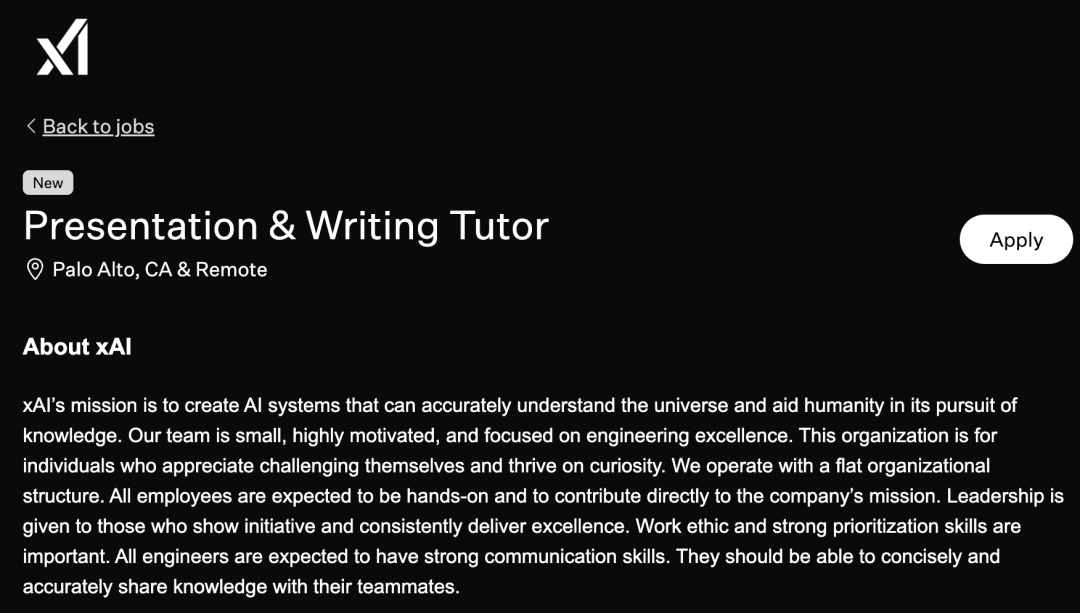 xAI在网上列出了16个岗位,包括「模因和标题评论」和Grok「个性和行为」岗位。