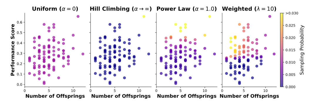 具体来说,就是在抽样时先均匀抽取岛群ID,再结合top-K优质解与随机样本选取亲本及启发程序,并通过幂律抽样(按适应度分配概率)与加权抽样(融合性能与新颖性)的多策略模式,平衡已知的良好解决方案和探索新想法。