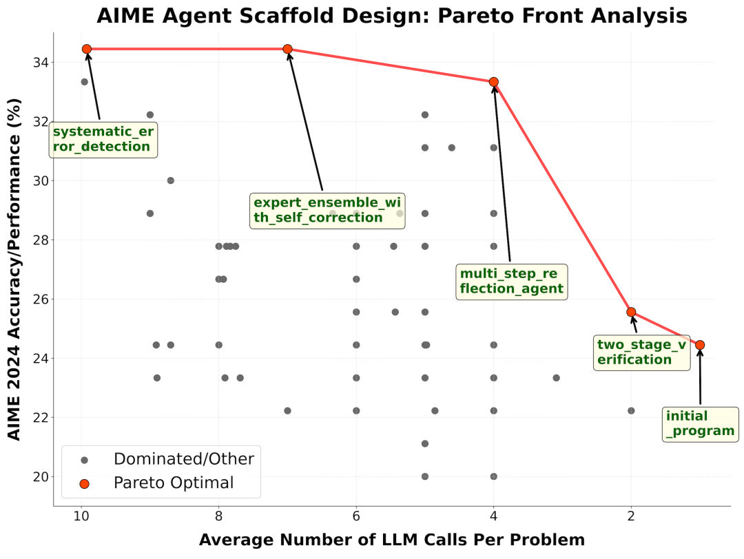 在Agent设计上,实验针对2024年AIME竞赛的30道数学推理问题,提出以gpt-4.1-nano为基础模型,最多调用10次LLM查询。