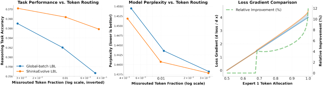 研究人员还在混合专家 (MoE) 负载均衡损失函数的任务上评估ShinkaEvolve,要求以556M参数MoE进化负载平衡损失(LBL),2.7B参数MoE验证泛化性,最终平衡交叉熵损失与专家均衡性。