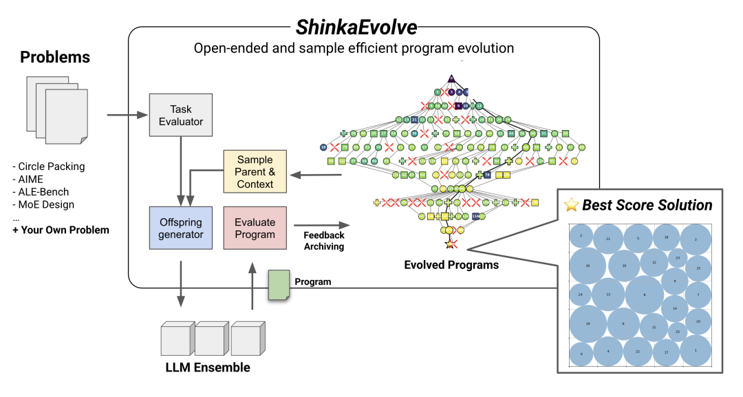 而ShinkaEvolve框架则针对上述问题,实现了性能与效率的双重程序进化,其核心在于三大关键技术: