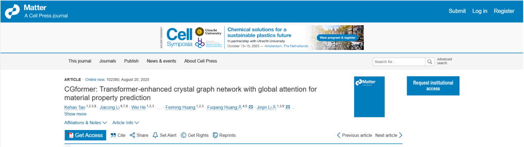 上海交通大学人工智能与微结构实验室李金金教授和黄富强教授团队研发出全新 AI 材料设计模型 CGformer,成功突破传统晶体图神经网络局限。