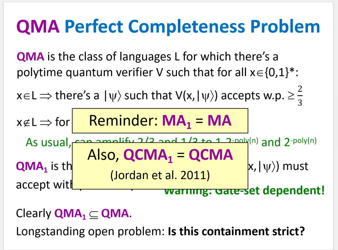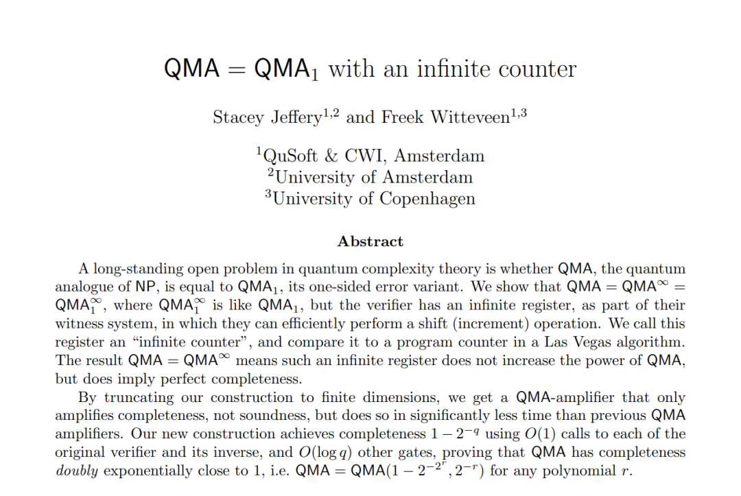 他们在一篇名为《QMA = QMA1 with an infinite counter》的论文中指出,任意QMA协议都可以通过黑盒放大,使得完备性误差变为双指数小。