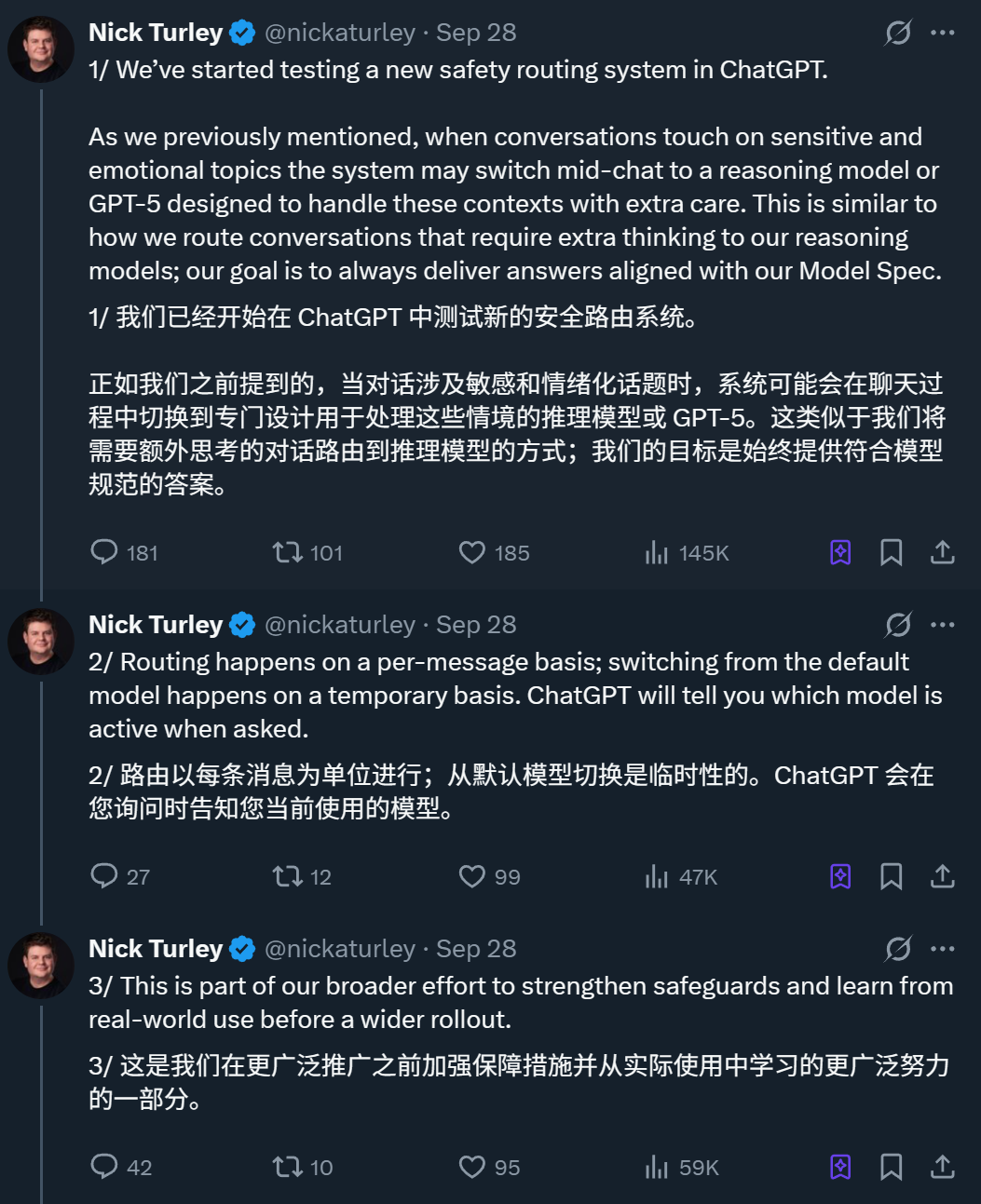 而且他声称目前该行为是临时性的,未来ChatGPT在询问时仍会向用户说明所用模型。