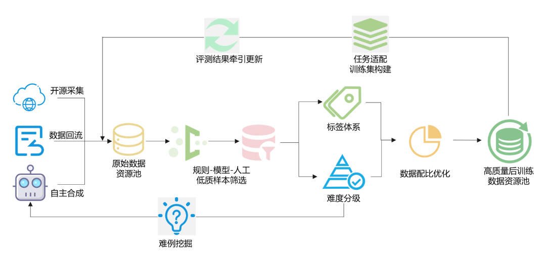 - 质量优先:团队建立了指令数据质量评估体系,结合规则、模型和人工三重审核机制,以确保低质量样本的有效清理。