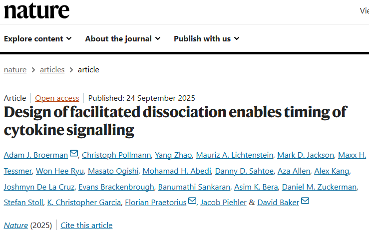 Broerman, A.J., Pollmann, C., Zhao, Y. et al. Design of facilitated dissociation enables timing of cytokine signalling. Nature (2025).