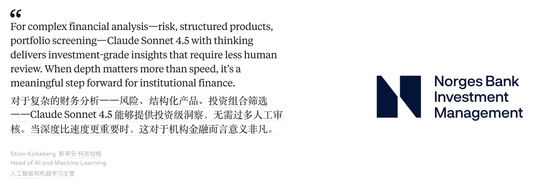 非编程类任务当中,也有金融机构的人工智能主管表示Claude Sonnet 4.5能够提供投资级的洞察。