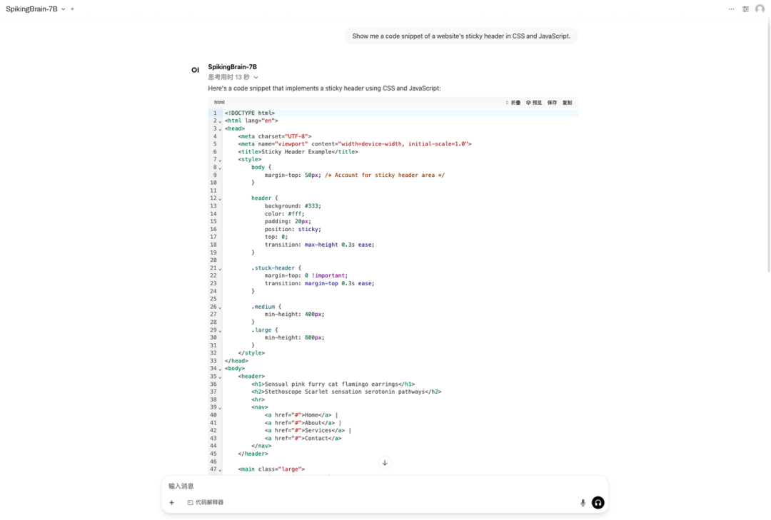 目前,「SpikingBrain-1.0 基于内生复杂性的类脑脉冲大模型」已上线至 HyperAI超神经官网的「教程」板块,点击下方链接即可体验一键部署教程 ⬇️