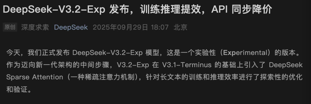 DeepSeek-V3.2-Exp刚刚官宣上线,不仅引入了新的注意力机制——DeepSeek Sparse Attention。