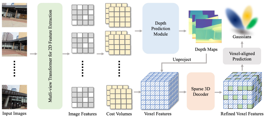这一范式的效果即时且深远:在3D网格内,视图间的不一致被天然消融;高斯密度不再被像素网格绑架,而是基于体素的“有无”和复杂度动态分配。这一范式带来的直接好处可以概括为四点: