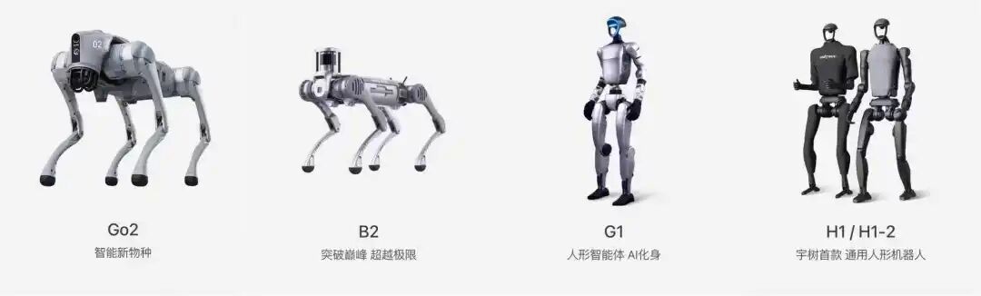 Go2、B2四足机器人 G1、H1等人形或类人形机型