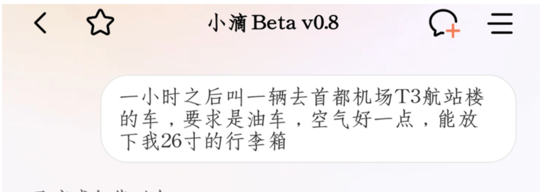 进入以后我发现,小滴的界面和传统打车页面完全不一样,看着很像是ChatBot,但小滴能做的可不仅仅是聊天。
