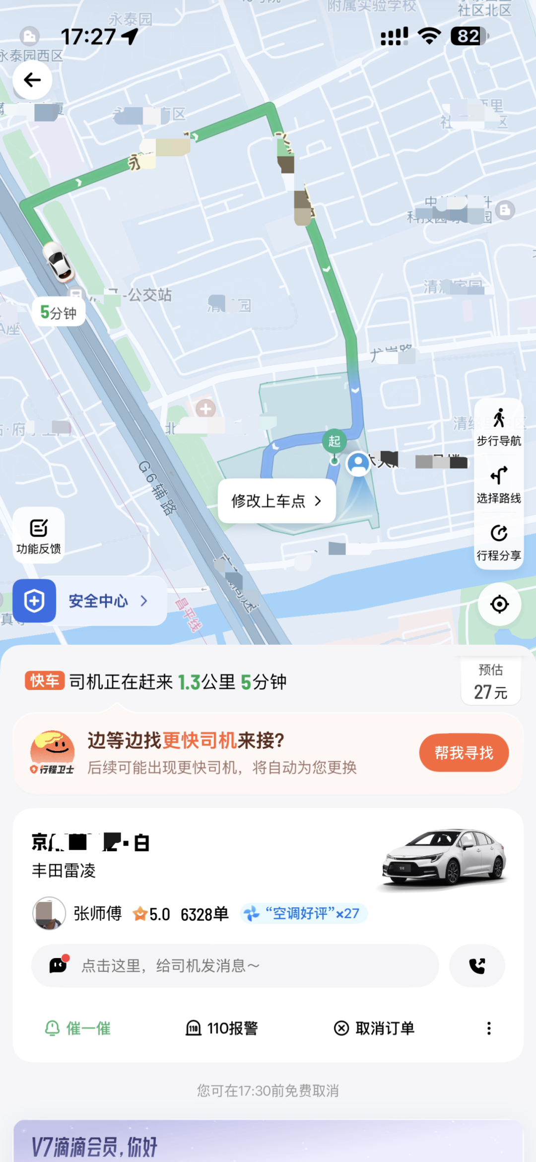 我选择了最让我满意的一辆车,接着就跳转到了司机师傅接驾的界面。