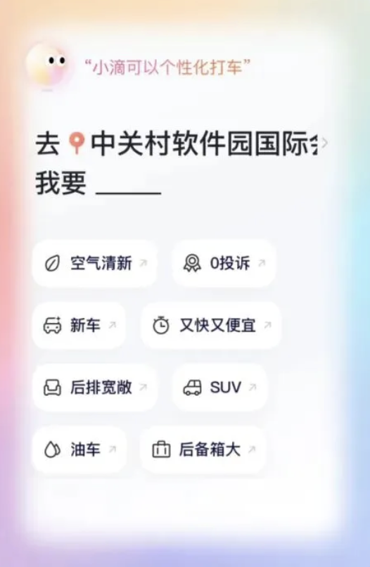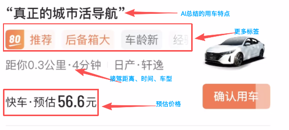 滴滴基于丰富的车辆和司机信息,通过AI智能理解用户需求,提供更精准、更完善、更贴近用户期望的用车方案。