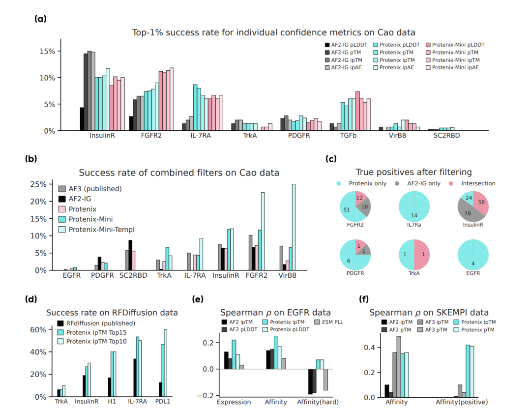 简而言之,以Protenix为核心构建评估工具,实验成功率更高,尤其适合大规模筛选。这也帮助PXDesign取得了非常高的湿实验成功率。