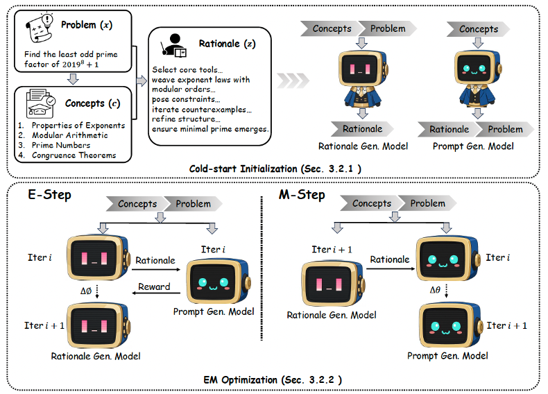 PromptCoT 2.0在PromptCoT 1.0基础上引入基于期望最大化(EM)的优化过程,使逻辑生成模型和问题生成模型能够在迭代中相互促进。