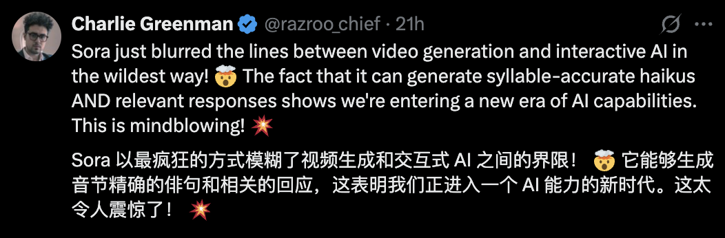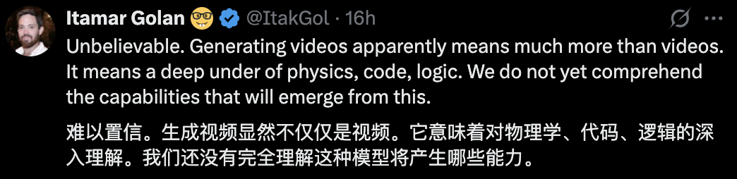 这段视频场景+LLM推理的实测效果让一众网友惊叹,甚至有人说“Sora2模糊了视频生成和交互式AI的边界”。