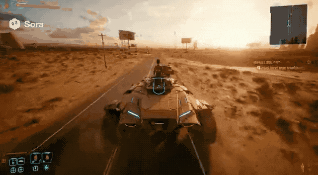 生成《赛博朋克 2077》中使用巨龙坦克和帕纳姆的游戏画面。