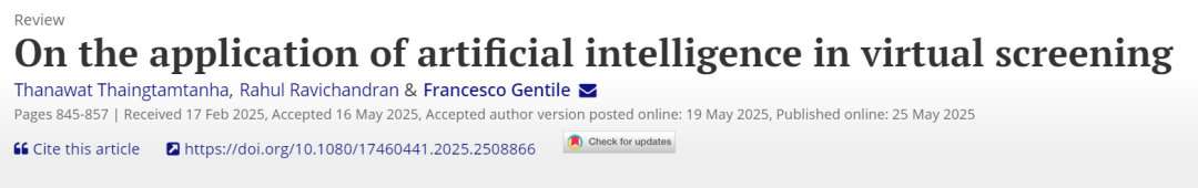 渥太华大学研究团队于2025年5月25日在《Expert Opinion on Drug Discovery》上发表文章,题为“On the application of artificial intelligence in virtual screening”。