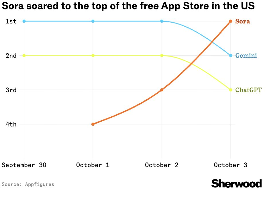 发布仅三天,Sora APP便强势登顶美国App Store榜首,堪称「出道即顶流」!