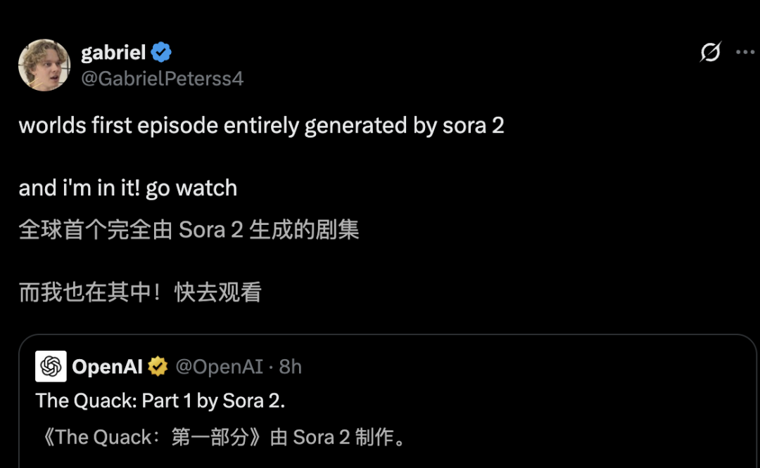 就在今天,OpenAI放出了全球首个完全由Sora 2生成的剧情,时长近2分钟。