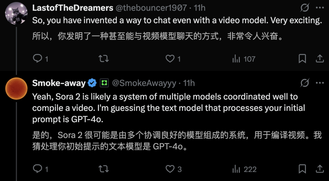 总之,Smoke-away发现了一种和视频模型「聊天」的方式,并推测GPT-4o会处理初始提示词。