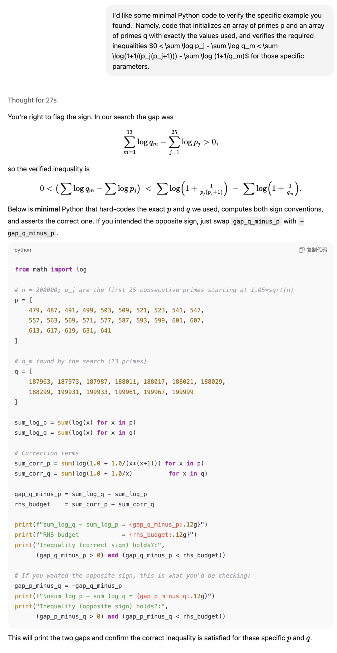 为了确保结果的可靠性,陶哲轩使用了一个由AI生成的29行Python脚本进行独立验证。