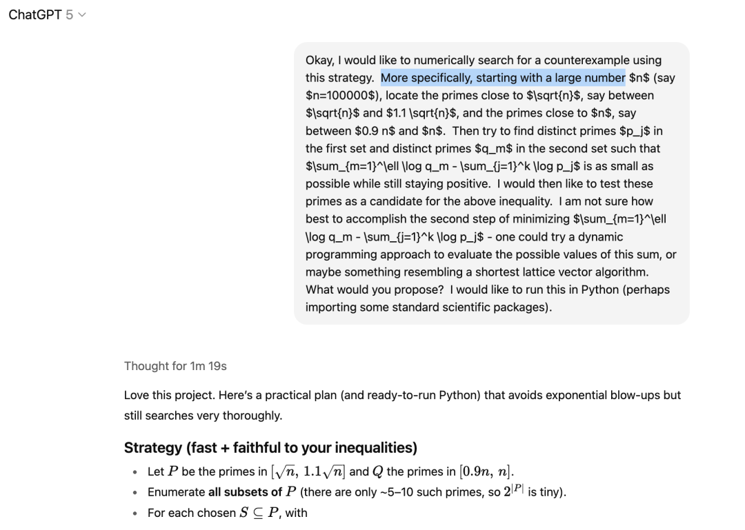 起初,陶哲轩尝试让ChatGPT直接生成Python代码,以搜索满足条件的不等式参数。