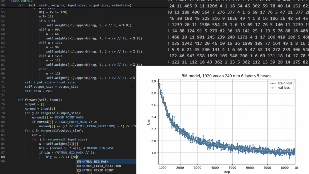 首先,在自己的电脑上训练一个小型GPT,把权重压缩到低精度(int8、int4,或者 0–15 的模拟值),并导出权重和网络结构(NumPy数组等)。