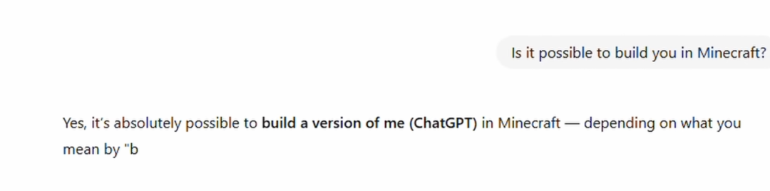 (GPT可能也没想到,这顺嘴一说,直接把自己送进了《我的世界》。)